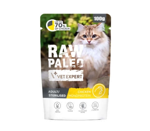 RAW PALEO Chicken Adult/Sterilised is a complete feed for adult cats from 1 year of age. Read more